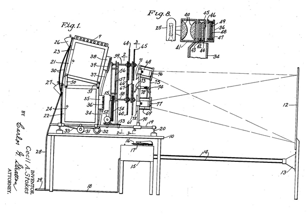 U.S. Patent drawing for Stokes' “Process and Apparatus for Producing Musical Rhythm in Color”
