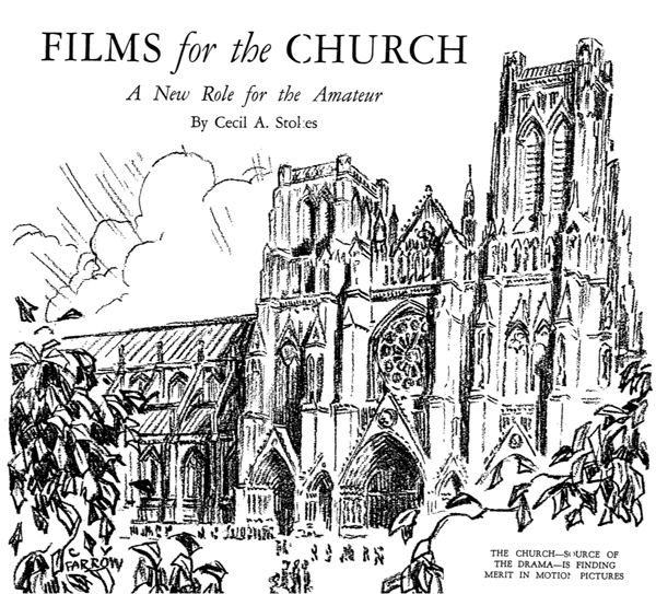 Illustration for Cecil A. Stokes, “Films for the Church: A New Role for the Amateur,” Amateur Movie Makers 2, no. 9, (Sept. 1927): 18-19.