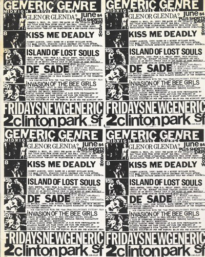 Screening poster for Generic Genre, Midnight Movie Lounge, June 1984.