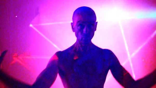 As he cleanses the space of any lingering organic vestiges of his paintings, he moves in a choreographed dance to invoke his work, timed to a rear-projected, four-channel video that has replaced the walls, and the paintings begin to reappear as animated, pulsating landscapes—electronic portals to the painted worlds. From inside the work, the elemental gods appear wielding spiraling fire. He directs them to enter the paintings, circling them in a ring of fire that consumes his body and the film’s frame in a blinding white light of additive colour.
