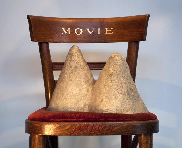 JB: Movie Mountain is a kind of emblem – a distillation and combination of other works or elements in my vocabulary. I have done a number of works like this. They are like a cast of characters or a family portrait. Movie Mountain is a photograph of the multifaceted photo-sculpture Mountain (2004), positioned to cast a shadow onto a movie screen. I like recombining elements or actual works into new composites, in the process adding more layers of representation, complicating their meanings.
